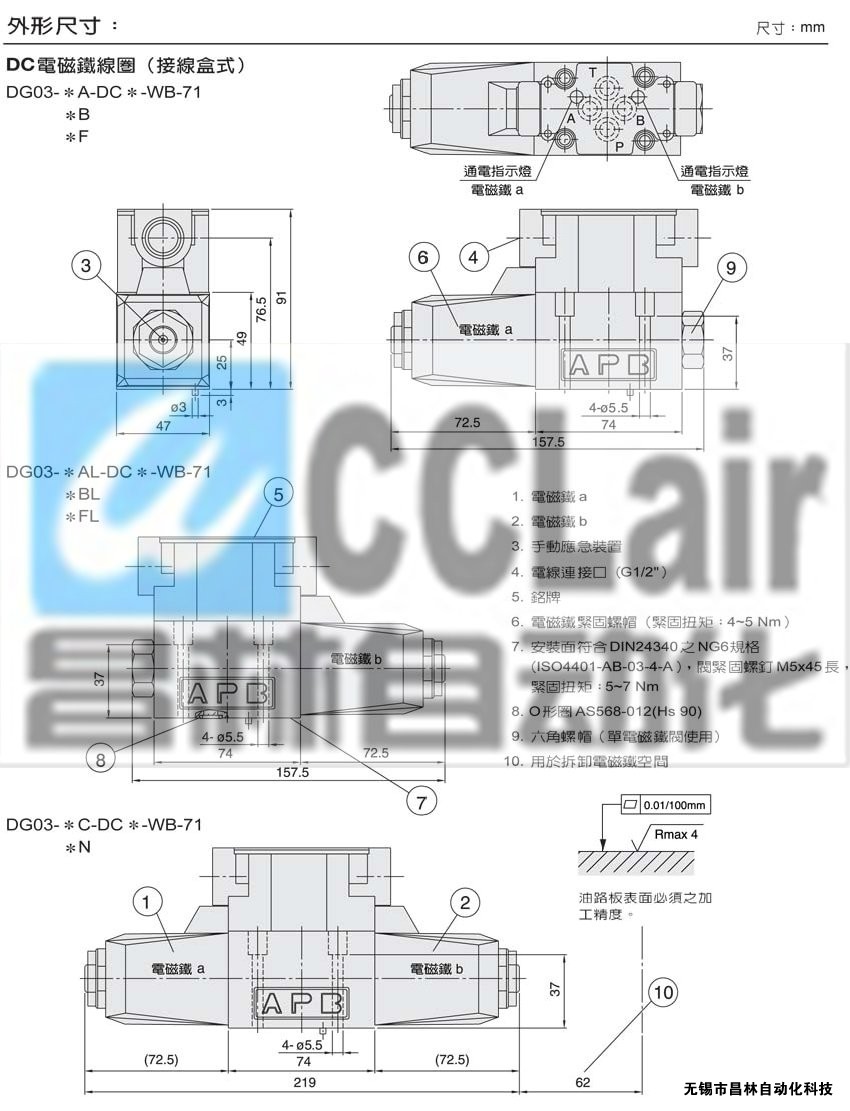 DG03-2N,DG03-3N,DG03-5N,DG03-6N,DG03-7N,DG03-8N,DG03-11N,DG03-22N,濕式電磁鐵操作換向閥