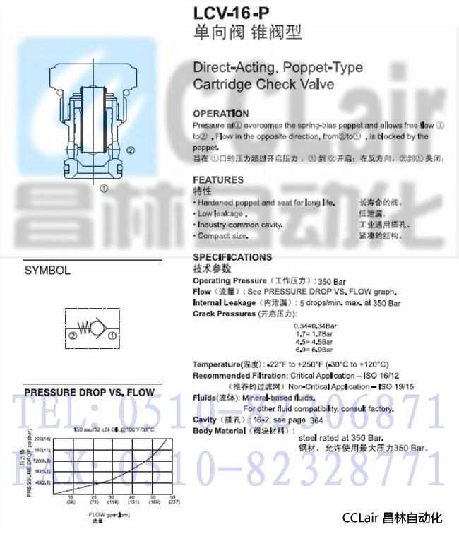 LCV-16-P-0.34,LCV-16-P-1.7,LCV-16-P-4.5,LCV-16-P-6.9,錐閥型單向閥,