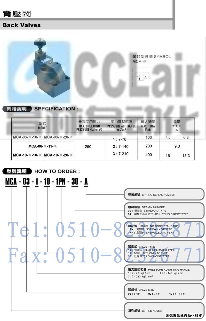 MCA-10-3-10-1PN-30-A 背壓閥