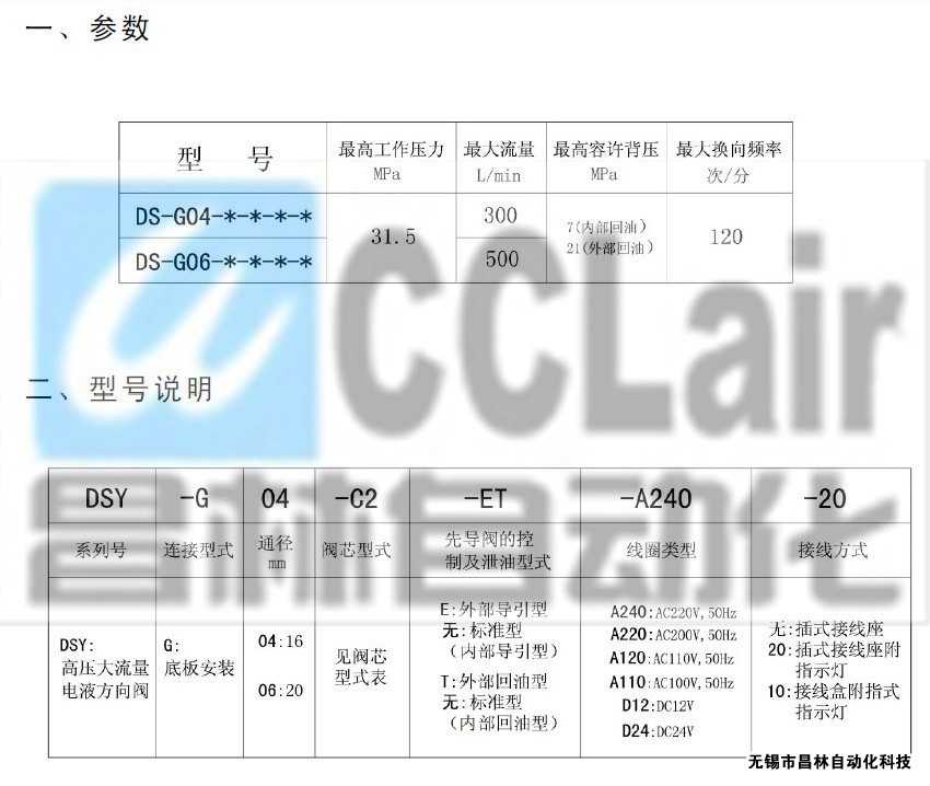 DSY-G06-B4-T-D24-20,DSY-G06-B40-T-D24-20,DSY-G06-C2-T-D24-20,電液方向閥