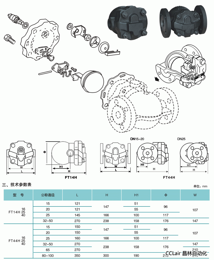 FT14H16,FT14H25,FT14H40,FT44H16,FT44H25,FT44H40,杠桿浮球式蒸汽疏水閥