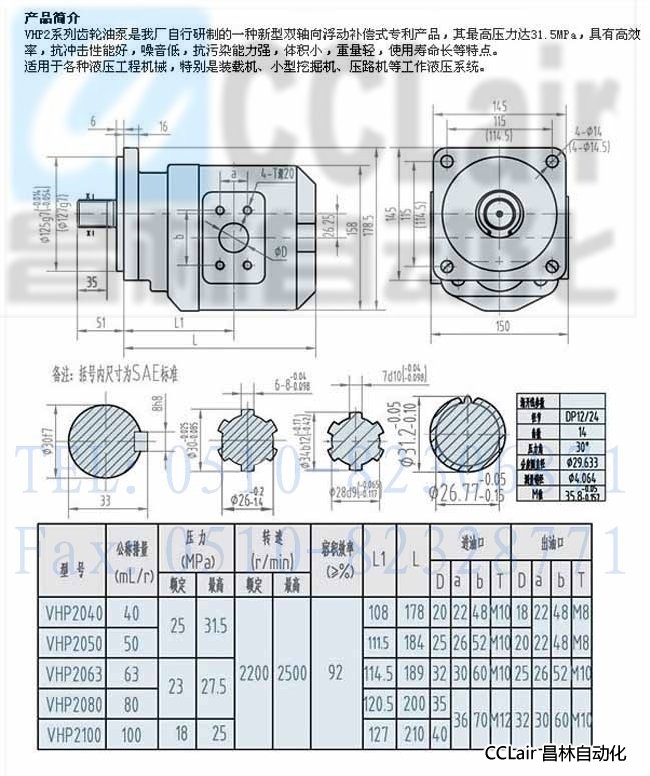 VHP2040,VHP2050,VHP2063,VHP2080,VHP2100,齒輪油泵