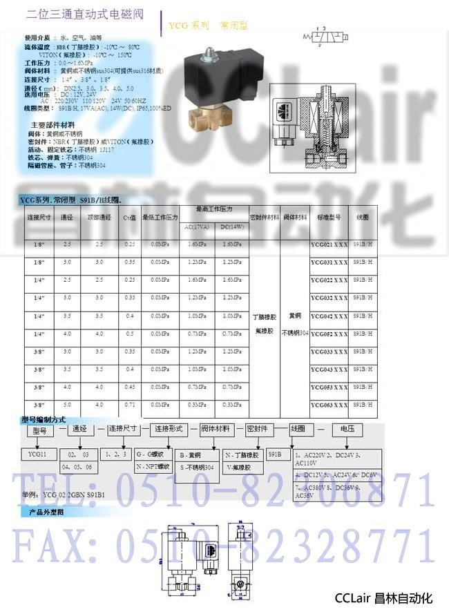 YCG11033,YCG11041,YCG11042,YCG11043,YCG11051,二位三通直動(dòng)式電磁閥 ,價(jià)格