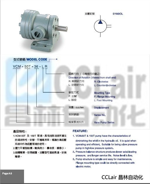 VCM-50T-36-LR,VCM-150T-48-LR,VCM-150T-61-LR,VCM-150T-75-LR,定量葉片泵 |