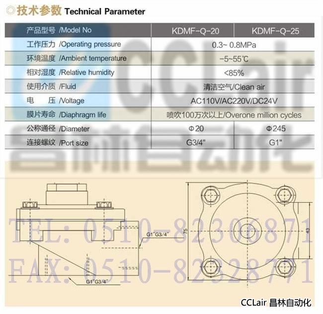 KDMF-Q-20, KDMF-Q-25 ,直角式電磁脈沖閥