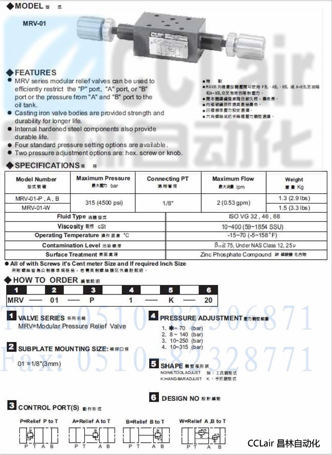 MRV-01-P,MRV-01-A,MRV-01-B,MRV-01-W,積層型溢流閥