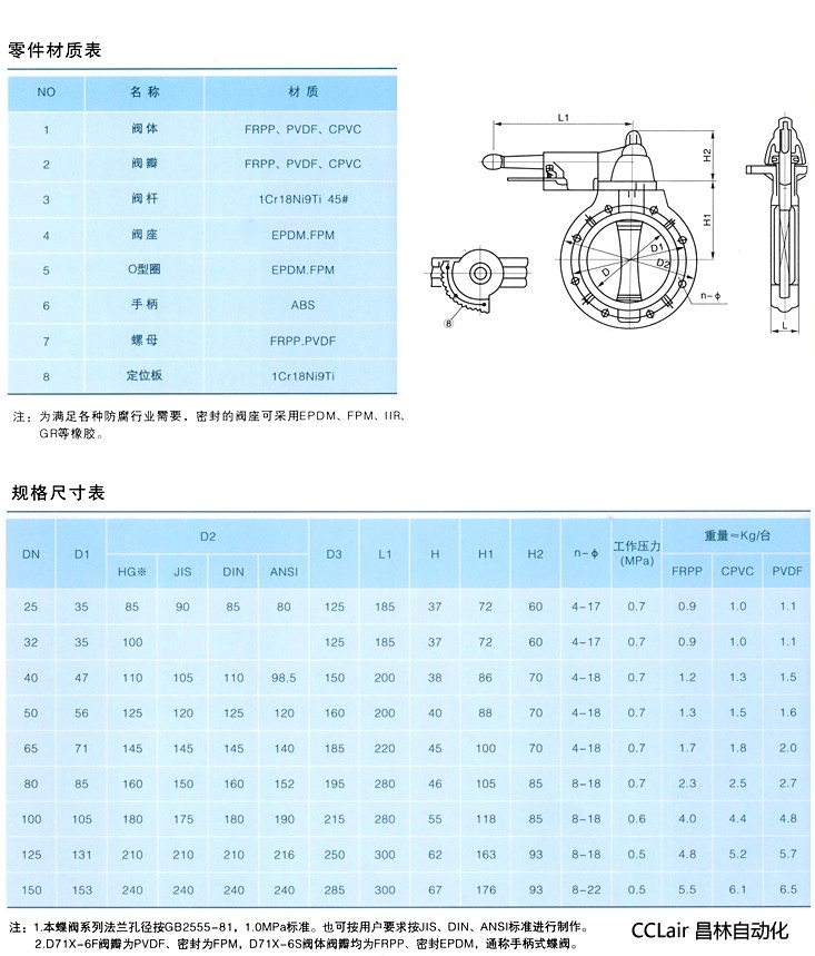 UPVC 硬聚氯乙烯 溫度-10 °C~70 °C