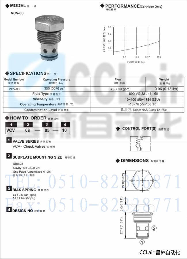 VCV-08-21,插入式止逆閥,