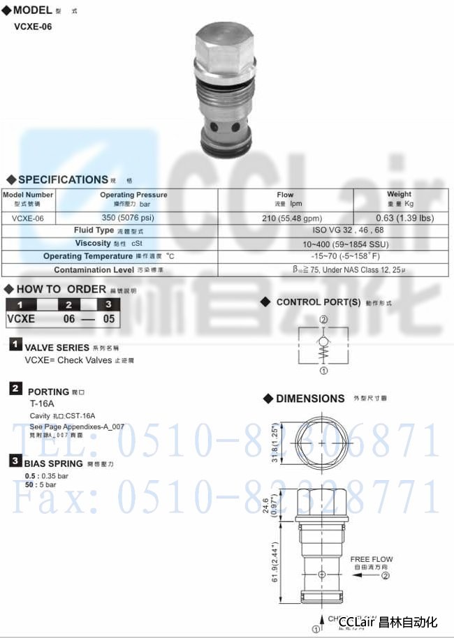 VCXE-06,插入式止逆閥,
