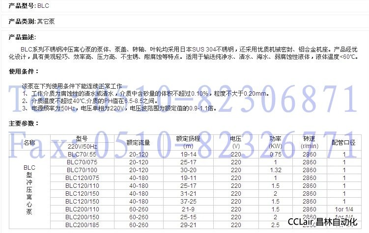 BLC120/075,BLC120/110,BLC120/150,BLC120/150,不銹鋼沖壓離心泵