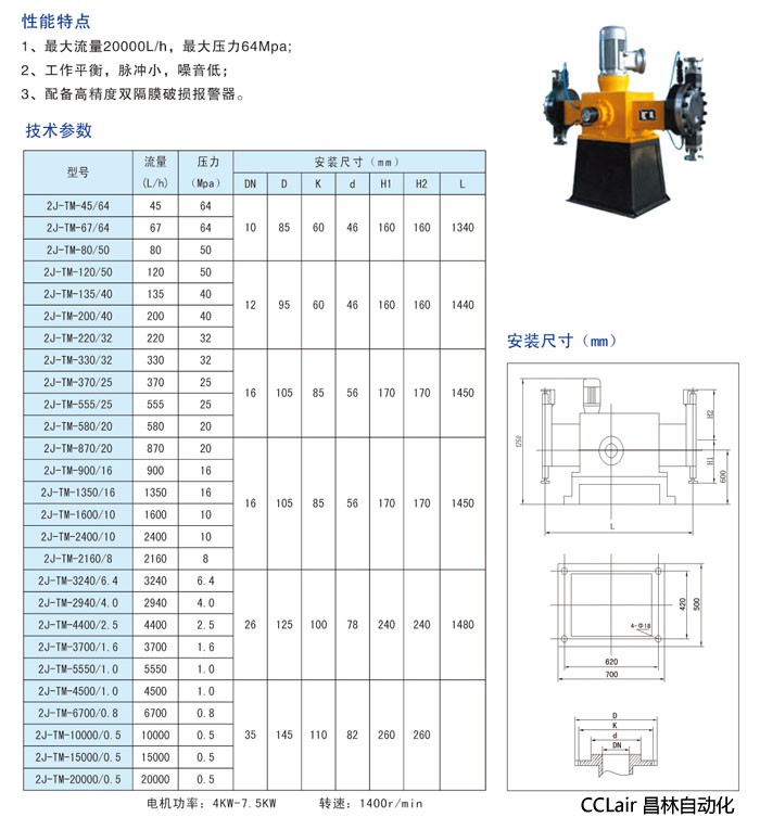 2J-TM-120/50,2J-TM-135/40,2J-TM-200/40,液壓隔膜計量泵