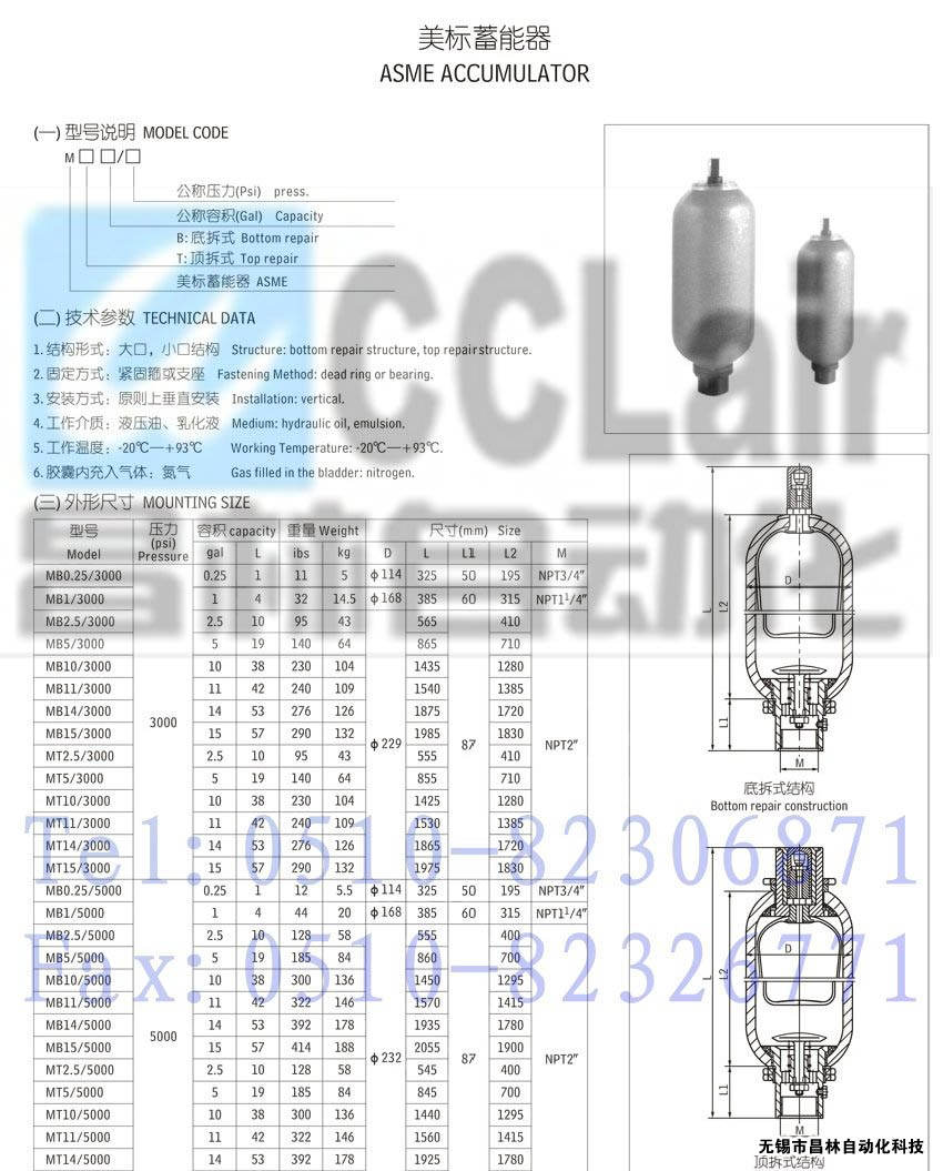 MB0.25/3000,MB1/3000,MB2.5/3000,MB5/3000,MB10/3000,MB11/3000,MB14/3000,美標(biāo)蓄能器,生產(chǎn)廠家,價(jià)格