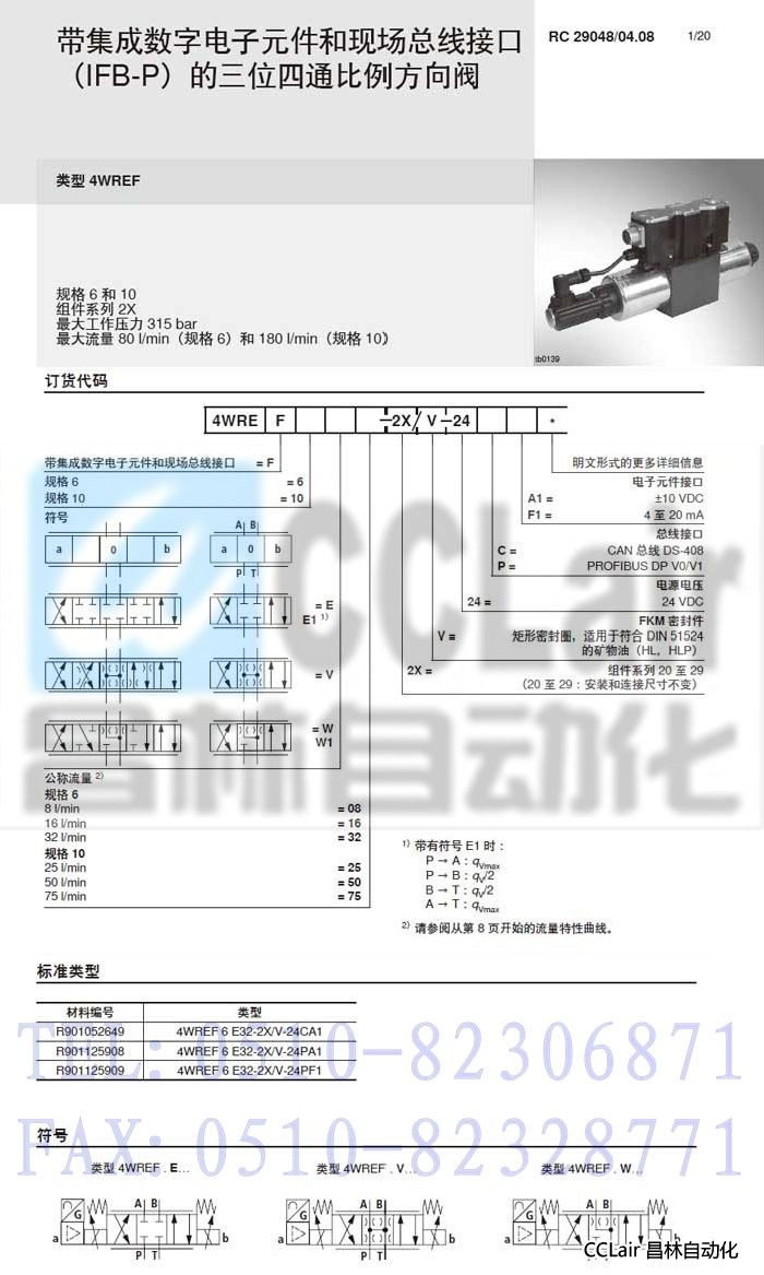 4WREF6E32-2X/V-24CA1,4WREF6E32-2X/V-24PA1,4WREF6E32-2X/V-24PF1,比例方向閥,力士樂(lè)REXROTH,德國(guó)力士樂(lè)