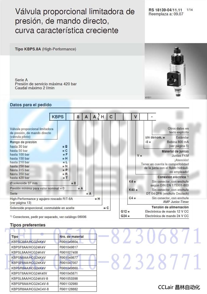 KBPST8AA/HCG24K40V,KBPSL8AA/HCG24K4V-8,,直動式比例溢流閥,力士樂REXROTH,德國力士樂