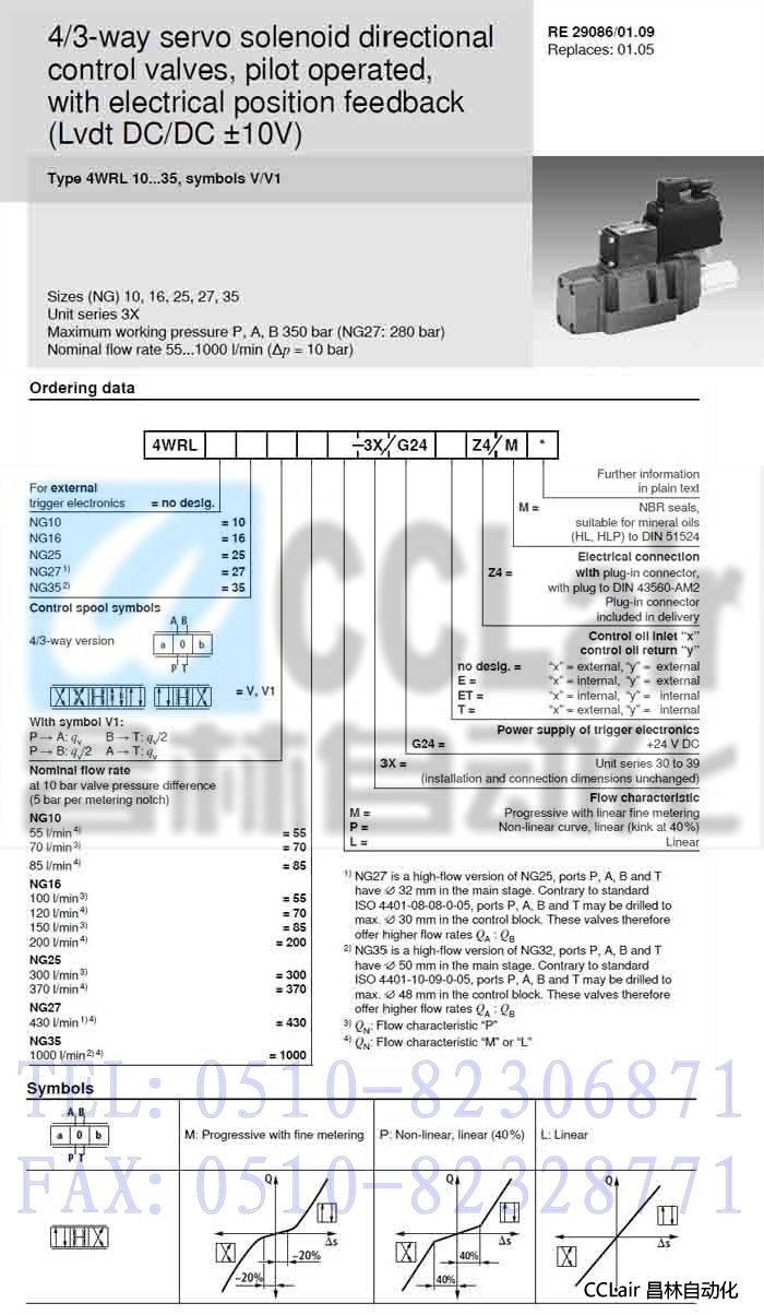 4WRL10V1-70P-3X/G24Z4/M,4WRL10V1-85M-3X/G24Z4/M, 先導(dǎo)式方向控制閥,力士樂REXROTH,德國(guó)力士樂