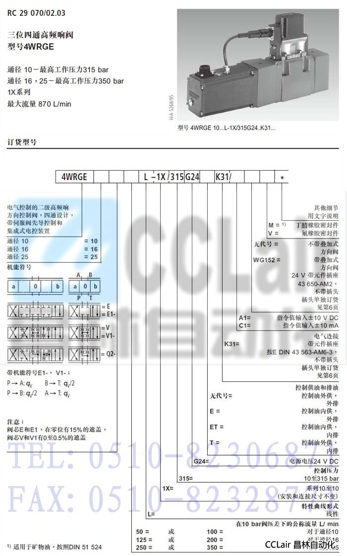 4WRGE10V1-100L-1X/315G24ETK31/A1M,4WRGE10V1-100L-1X/315G24TK31/A1M, 先導(dǎo)式方向控制閥,力士樂REXROTH,德國力士樂 |