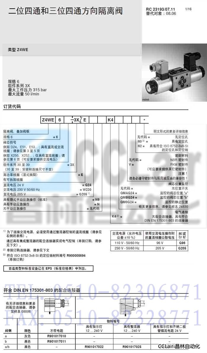 Z4WE6D24-3X/EG205N9K4,Z4WE6X250-3X/EG24N9K4QMAG24, 截止閥,力士樂REXROTH,德國力士樂