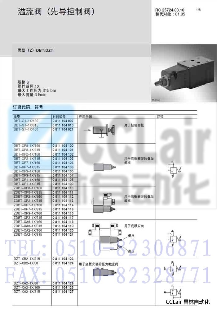0811104121 ZDBT-XA2-1X/315,0811104125 DZT-XA2-1X/60, ,直動(dòng)式溢流閥,力士樂REXROTH,德國力士樂