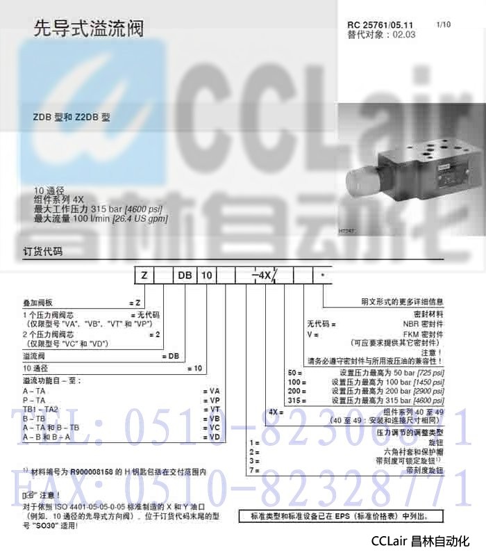 Z2DB10VC7-4X/200V,Z2DB10VC7-4X/315V,Z2DB10VD1-4X/50V, ,先導(dǎo)式溢流閥,力士樂(lè)REXROTH,德國(guó)力士樂(lè)