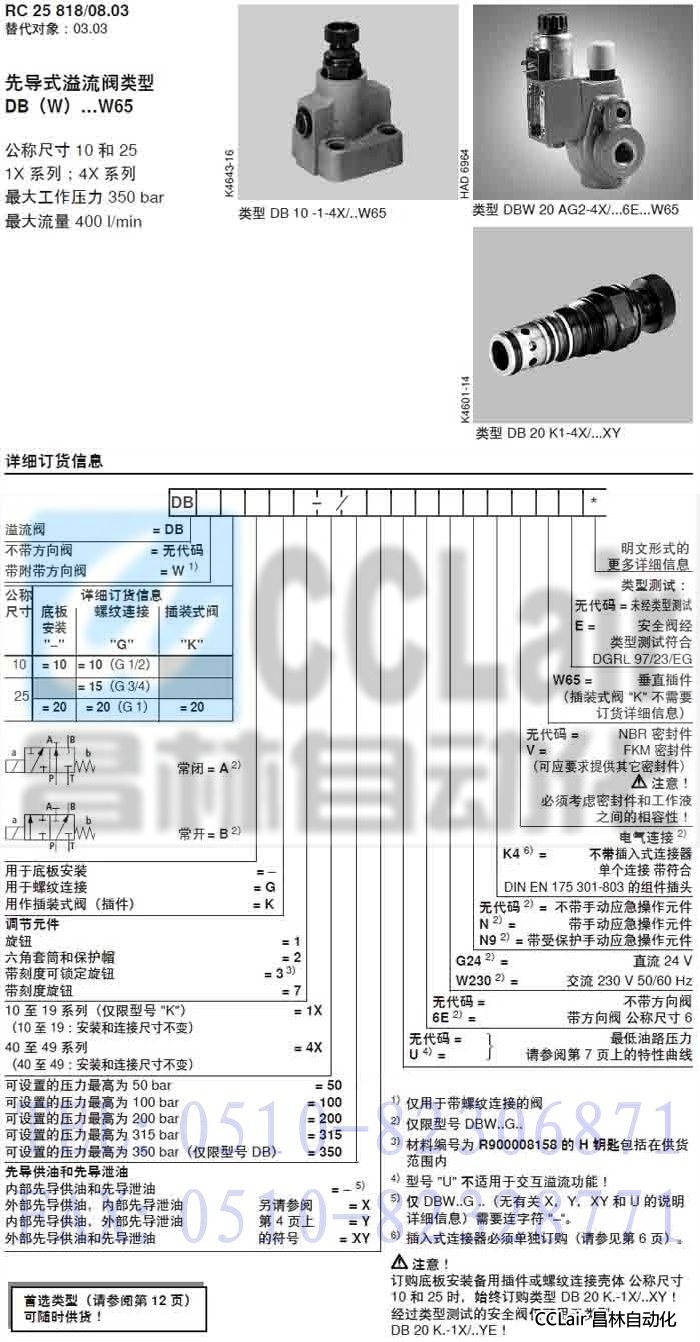 DB20G1-4X/200XYW65,DB20G1-4X/315W65,DB20G1-4X/315XW65,先導(dǎo)式溢流閥,力士樂REXROTH,德國力士樂