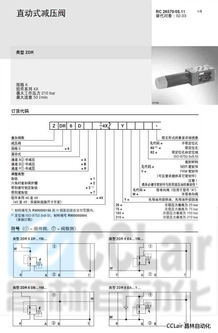 ZDR6DA1-4X/25YM,ZDR6DA1-4X/25YMV,ZDR6DA1-4X/25Y,直動(dòng)式減壓閥,力士樂(lè)REXROTH,德國(guó)力士樂(lè)