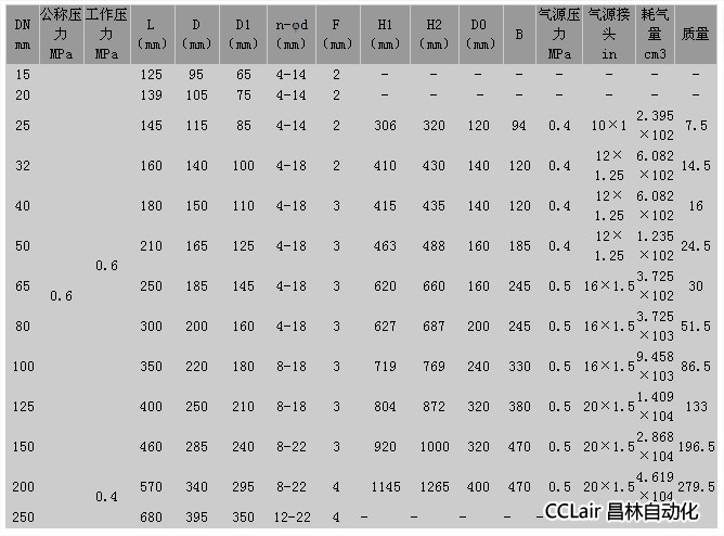 英標氣動常開型隔膜閥主要尺寸及重量: