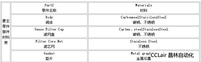 三、自動(dòng)排污過(guò)濾器主要零件部件材料表: