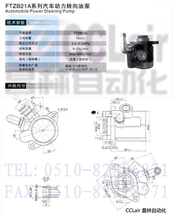 FTZB21A,汽車動力轉(zhuǎn)向油泵