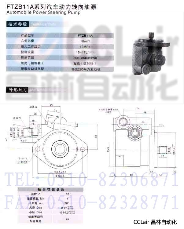 FTZB11A,汽車動力轉(zhuǎn)向油泵