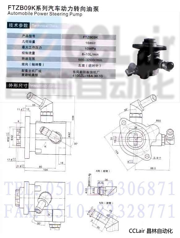 FTZB09K,汽車動(dòng)力轉(zhuǎn)向油泵