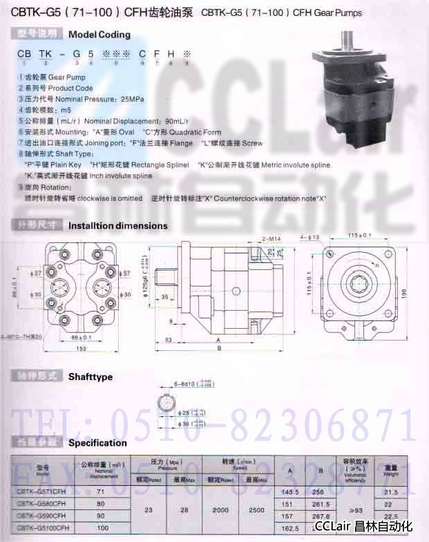 CBTK-G571CFH,CBTK-G580CFH,CBTK-G590CFH,CBTK-G5100CFH,齒輪油泵
