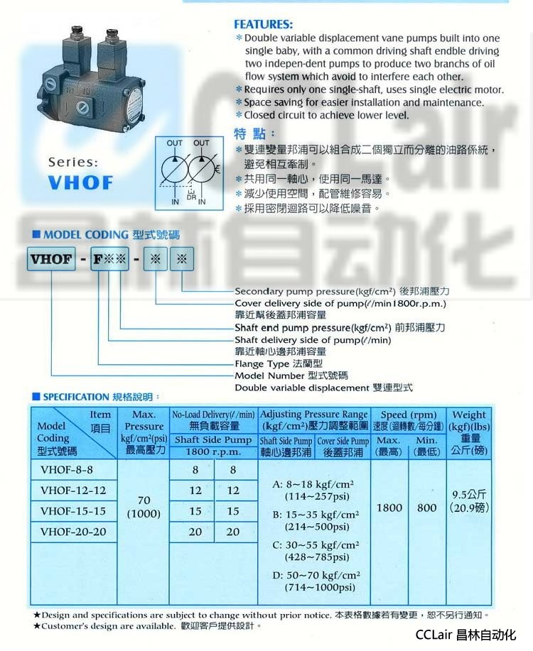 VHOF-08-08,VHOF-12-12,VHOF-15-15,VHOF-20-20,可變雙聯(lián)泵浦