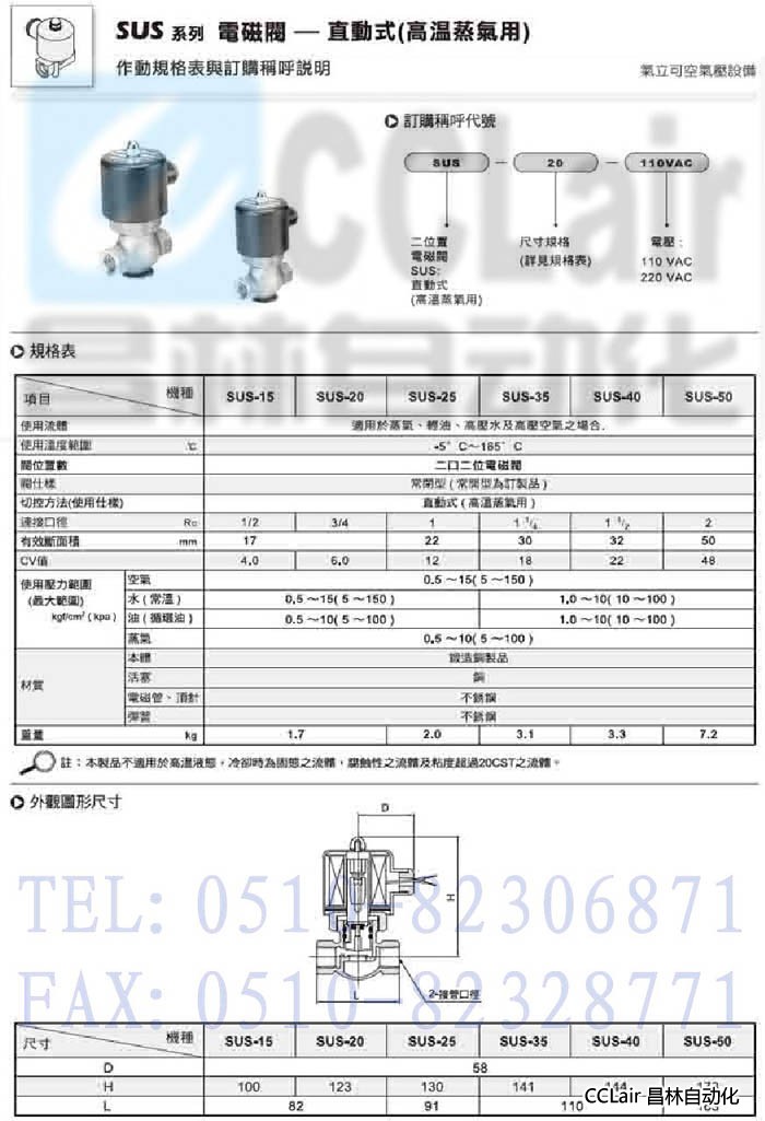 SUS-15,SUS-20,SUS-25,SUS-35,SUS-40,SUS-50,蒸汽電磁閥
