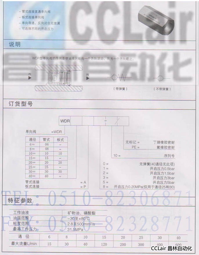 WDR6A,WDR8A,WDR10A,WDR15A,WDR20A,WDR25A,WDR30A,WDR40A,管式單向閥 |