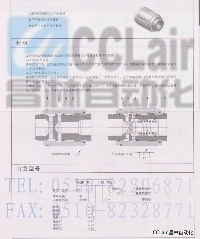 WQF6-10,WQF8-10,WQF10-10,WQF15-10,WQF20-10,WQF25-10,WQF30-10,管式節(jié)流閥 |
