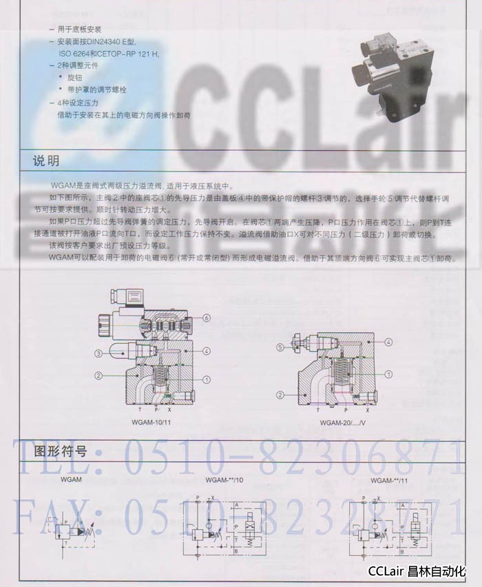 溢流閥 WGAM-20/11/50 WGAM-20/11/100 WGAM-20/11/210 WGAM-20/11/350 WGAM型先導(dǎo)式溢流閥