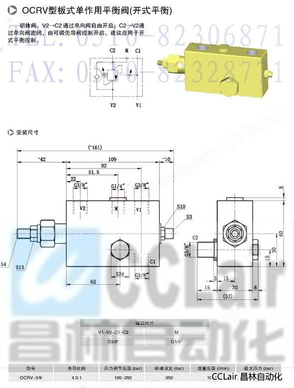 OCRV-3/8,板式單作用平衡閥(開(kāi)式平衡)