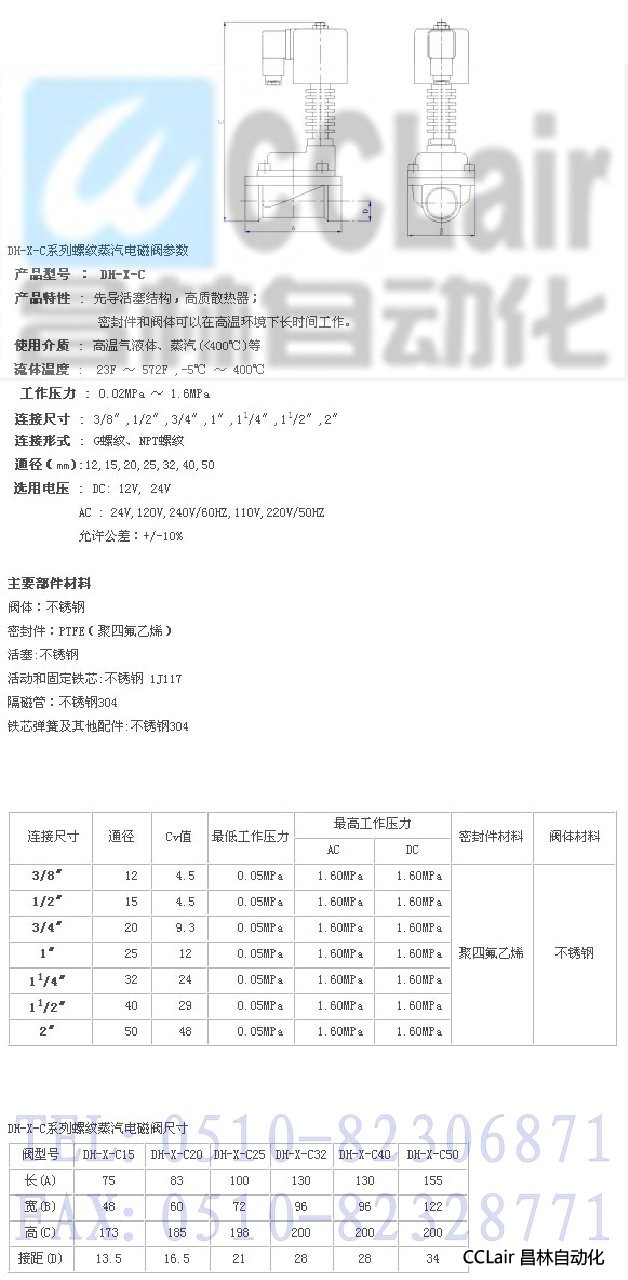 DH-X-C15,DH-X-C20,DH-X-C25,DH-X-C32,DH-X-C40,DH-X-C50,蒸汽電磁閥