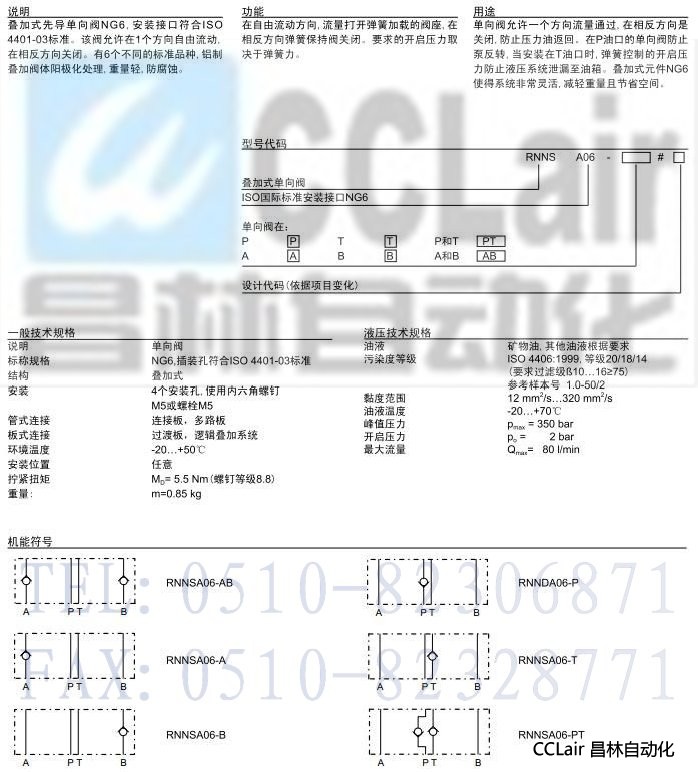 RNNSA06-A,RNNSA06-B,RNNSA06-AB,RNNSA06-P,疊加式單向閥