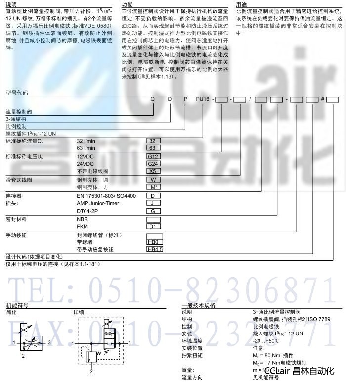 QDPPU16,插裝式比例3-通流量控制閥