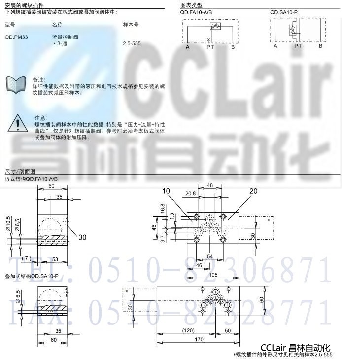 QD.SA10-P,QD.FA10-A/B,3-通板式和疊加式流量控制閥