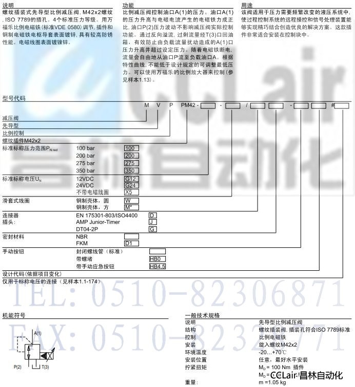 MVPPM42,先導(dǎo)式比例減壓插裝閥