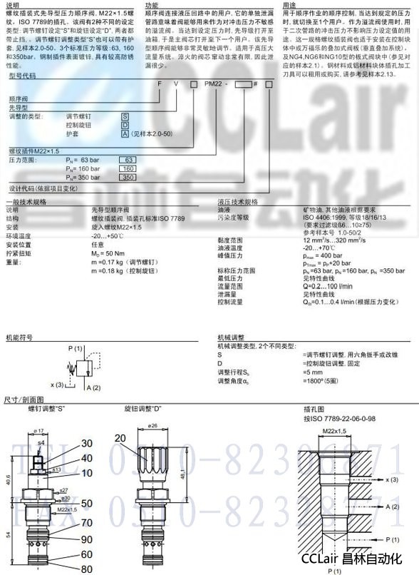 FVSPM22-63,F(xiàn)VDPM22-160,F(xiàn)V.PM22,先導(dǎo)式壓力順序插裝閥