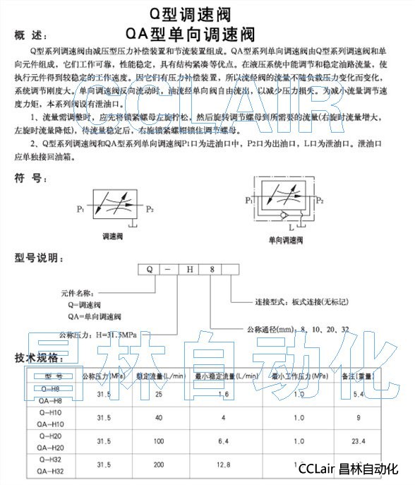 Q-H8,Q-H10,Q-H20,Q-H32,調(diào)速閥