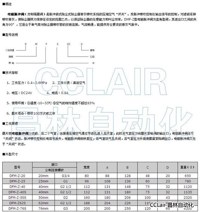 DFM-Z-20,DFM-Z-25,DFM-Z-40,DFM-Z-40S,電磁脈沖閥