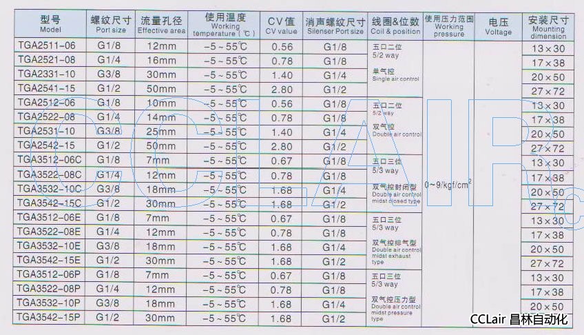 TGA2511-06,TGA2521-08,TGA2331-10,TGA2541-15,氣控閥