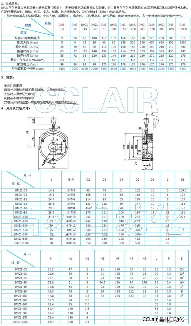 DMZ1-05,DMZ1-08,DMZ1-15,DMZ1-30,DMZ1-40,DMZ1-80,電磁失電制動器