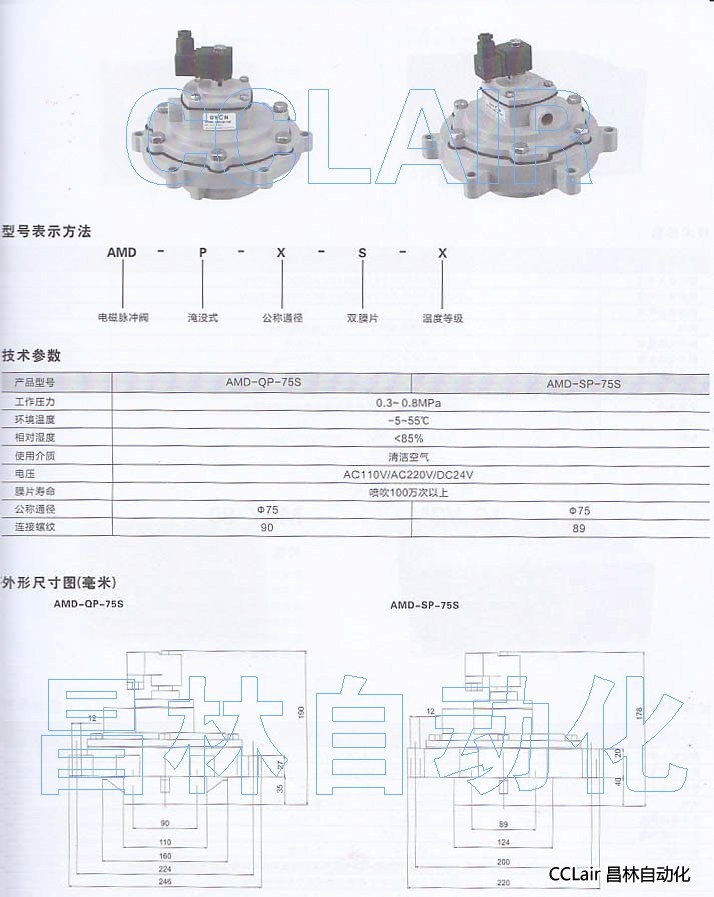AMD-QP-75S,AMD-SP-75S,淹沒式電磁脈沖閥