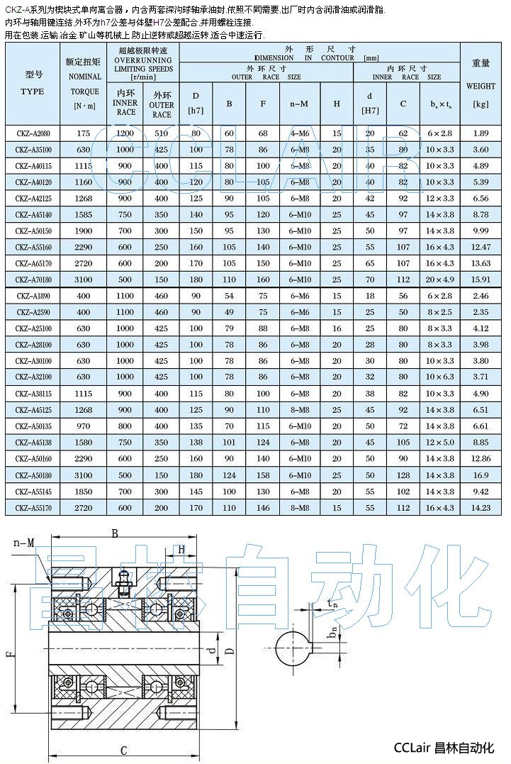CKZ-A2080,CKZ-A35100,CKZ-A40115,CKZ-A40120,單向離合器