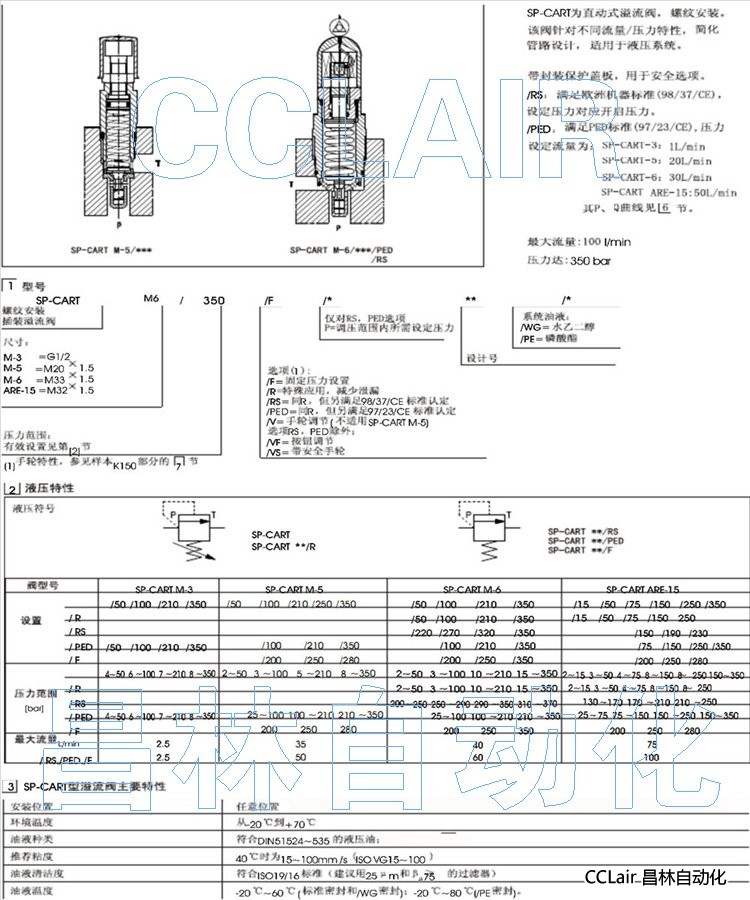 SP-CARTM-3,SP-CARTM-5,SP-CARTM-6,SP-CARTARE-15,直動式溢流閥